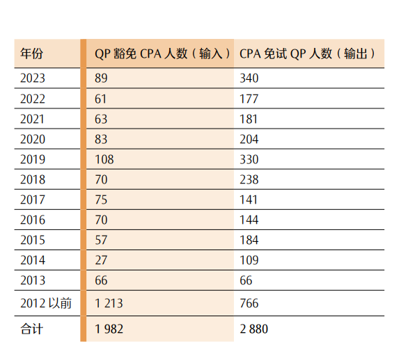 表 23CPA 与 QP 考试互免人数一览表