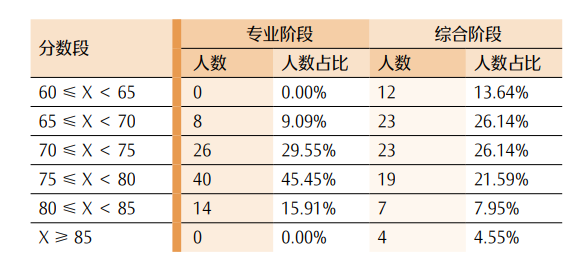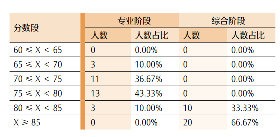 图 6专业阶段考试各科目成绩分布图