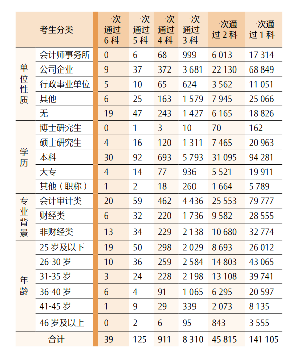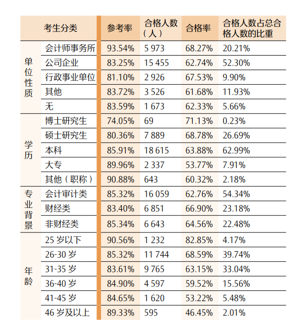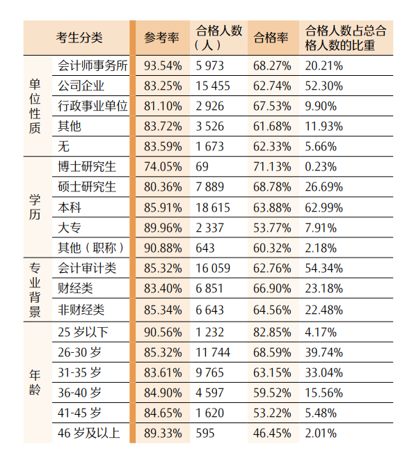 3. 财经类专业背景的考生,两个阶段考试的合格率均略高于其他类别考生。
