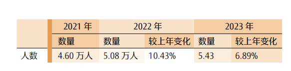 2. 综合阶段考试整体规模持续扩大。2023 年最终通过资格审核并完成交费的人数达到 5.43 万人,较 2022 年增加了6.89%,为历年最高值。具体情况详见表 5。