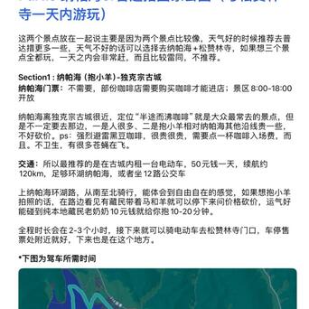 景点比较综合,可以在古城漫步,也可以在自然风景区撒欢狂奔(有高反的朋友悠着点),丰俭由人,交通便利,但是景区之间间隔时间会在半小时至3小时车程不等,需要选择你想去的地点合理规划行程。